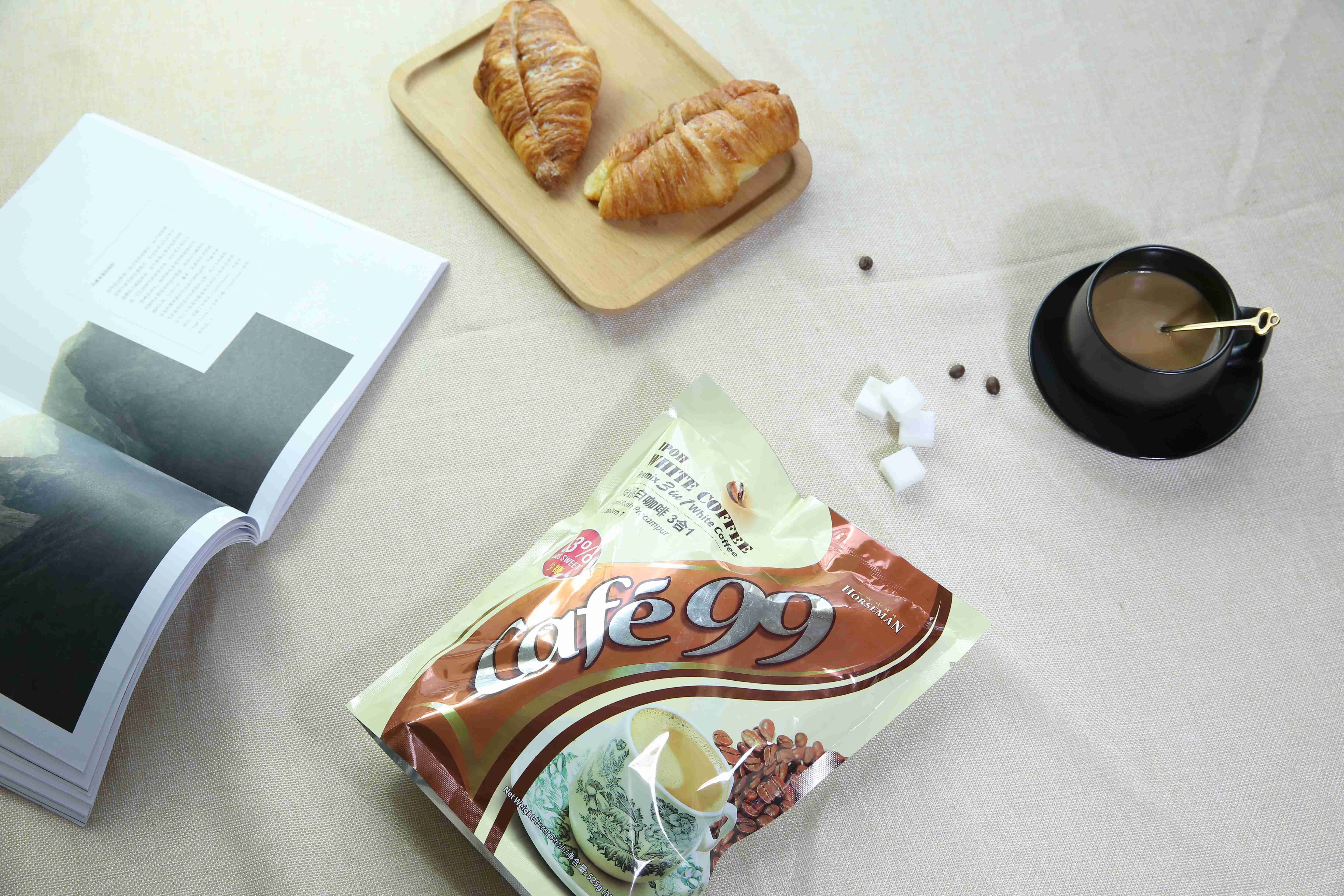 白咖啡是马来西亚的土特产,约有100多年的历史。经中轻度低温烘焙及特殊工艺加工后大量去除咖啡碱,去除高温碳烤所产生的焦苦与酸涩味,将咖啡的苦酸味、咖啡因含量降到最低,甘醇芳香不伤肠胃,保留咖啡原有的色泽和香味,口感爽滑、纯正,颜色比普通奶咖更清淡柔和,呈现出淡淡的奶金黄色,故得名为白咖啡。